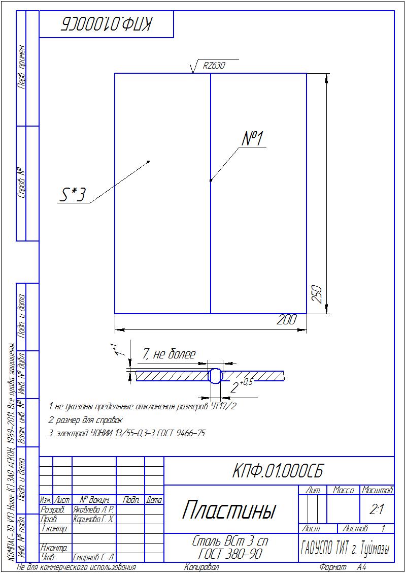 1. Чертеж - задание для конкурса профмастерства среди студентов 1 курса